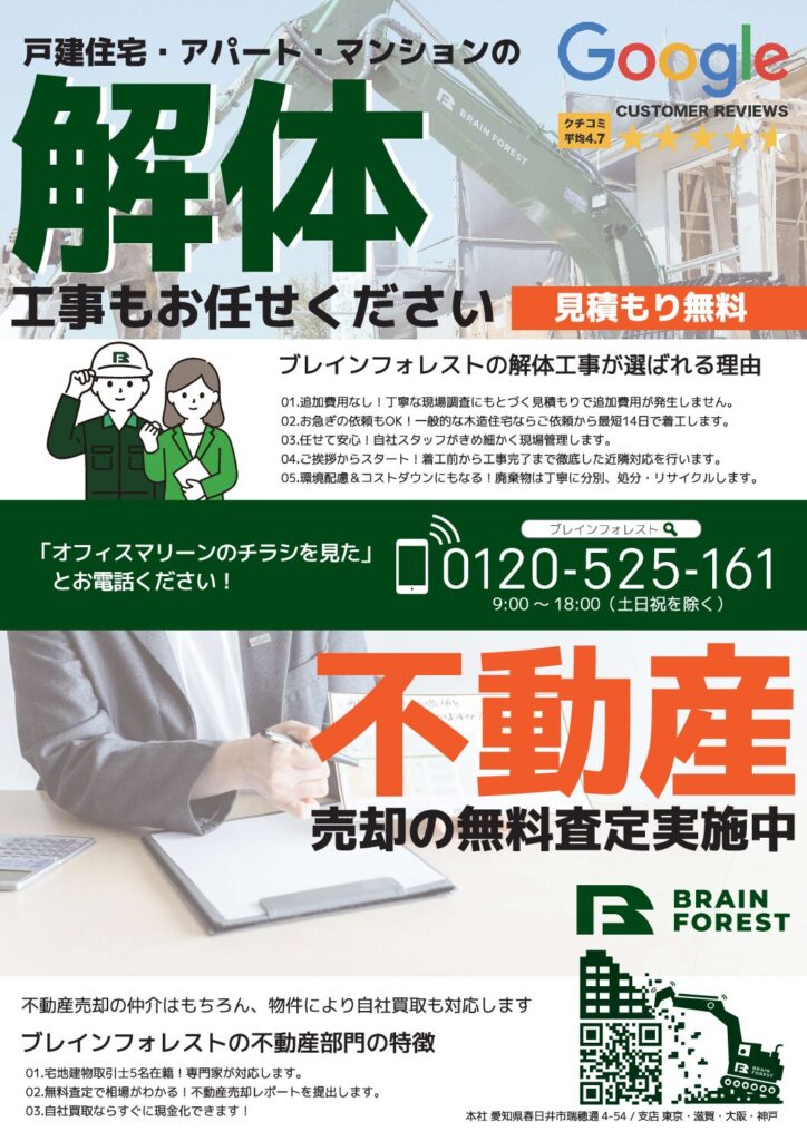 信頼できる解体専門業者「株式会社ブレインフォレスト」様と提携いたしました。